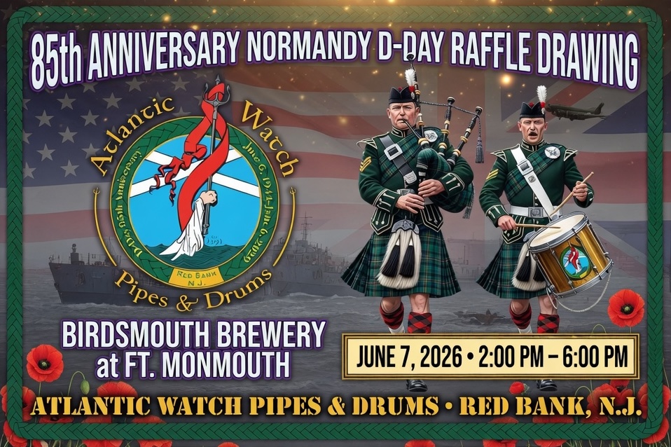 The Atlantic Watch Pipes & Drums of Red Bank, NJ has been given the honor to perform at multiple locations in France for the eighty-fifth Remembrance of D-Day.